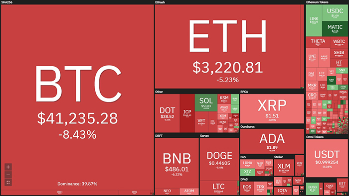 Sắc đỏ tiếp tục bao phủ thị trường tiền điện tử khi Bitcoin rơi về ngưỡng 41.000 USD sau khi không thể duy trì được các ngưỡng hỗ trợ.