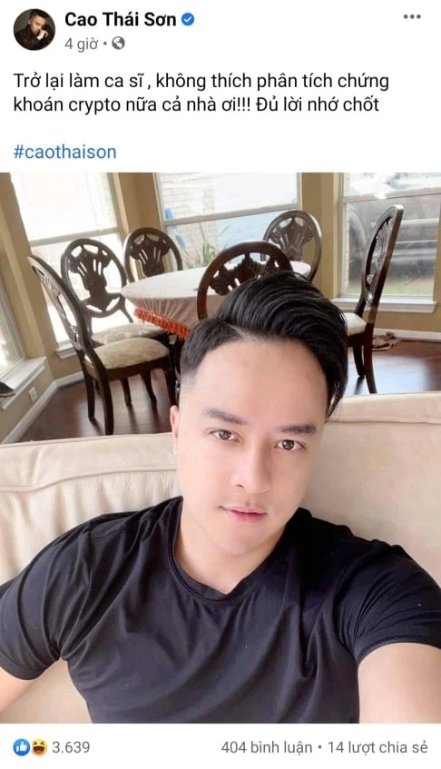 Trên Facebook cá nhân, ca sĩ Cao Thái Sơn mới đây đã có những chia sẻ về hoạt động đầu tư vào tiền điện tử (Crypto).