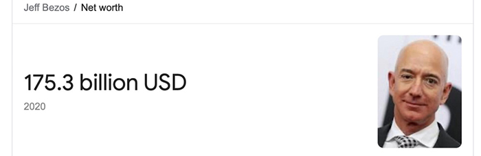 Hiện tại, khối tài sản Jeff Bezos đã cán mốc 175,3 tỷ USD và ông hiện là người giàu nhất thế giới. Vượt xa người đứng thứ hai là tỷ phú Bernard Arnault với 122 tỷ USD.