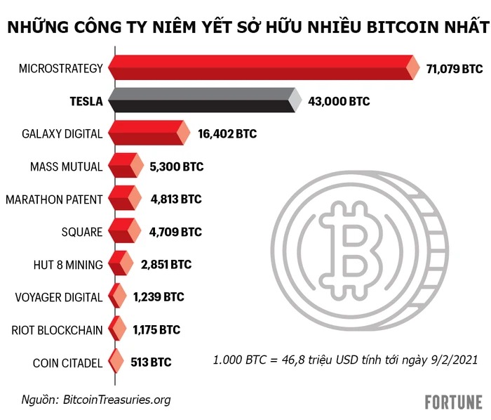 Mặc gây chú ý lớn, Tesla không phải công ty niêm yết đầu tiên mua Bitcoin và cũng không phải công ty sở hữu nhiều Bitcoin nhất. Hiện tại, Microstrategy, hãng phần mềm ít người biết đến, là công ty niêm yết nắm giữ nhiều Bitcoin nhất khi mạnh tay đầu tư vào tiền điện tử này trong năm 2020.