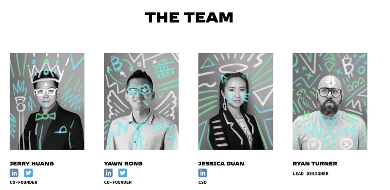 Yawn Rong (Co-founder): Doanh nhân, nhà đầu tư thiên thần tiền điện tử và start-up incubator. Có kinh nghiệm mở rộng quy mô doanh nghiệp và khởi nghiệp.