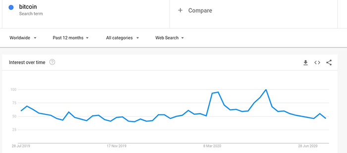 Lượt tìm kiếm Bitcoin trên Google chạm mức thấp nhất trong năm 2020