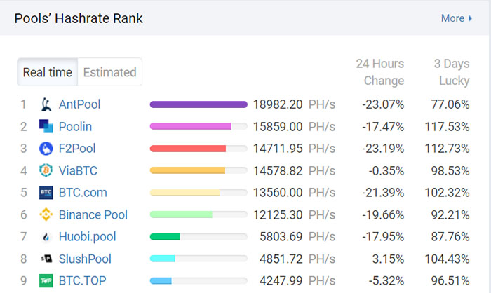 Dữ liệu từ BTC.com cho thấy các nhóm khai thác Bitcoin lớn tại Trung Quốc, đặc biệt là AntPool, F2Pool, Poolin và BTC.com, đã chứng kiến tỷ lệ Hashrate giảm từ 11% đến 30% trong 24 giờ qua. Các nhóm khác do Huobi và Binance điều hành cũng ghi nhận mức giảm hơn 10%.